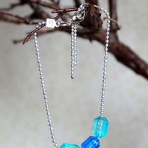Blue Beads Silver Chain Bracelet