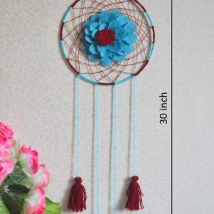 Dream catcher, which is made up of woolen and yarn, it is decorated with handmade flowers and hanging tassel which adds value to the product. It gives peace and repels negativity of your belonging and gives you positive vibes. It is renowned for its powerful spiritual qualities it traps bad dreams within their intricate web so that you can sleep more peacefully with colorful dreams. A perfect home decoration and beautiful wall hanging to enhance the beauty of the living room, balcony, and other space. It can be used as a party or occasion prop such as Mehdi and sangeet, also it is a great Gift item for Your Loved Ones who loves handmade products.