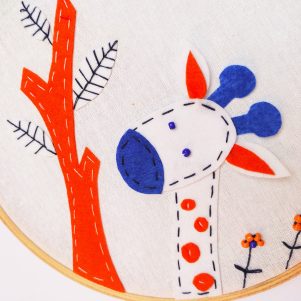 Beautifully handcrafted hoop wall art, which is aesthetically designed with soft cotton fabric and felt. Made from top-quality material, The Baby Giraffe artwork is made up of felt which is appliqued on the base fabric. It is handstitched with a neat finish and contrast color beaded flowers are giving an attractive look. Your kids will love this hoop art. This cute soft wall art is sure to become your child’s best companion. Extremely Perfect gift for any occasion. You’ll be happy you chose this wall art for your loved one. This wall art is easy to hang in kids’ rooms as well as in your living area.