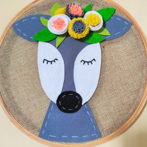 Beautiful handmade cute little felt deer and flower applique hoop wall decor for living room and kids room. It is beautifully crafted with felt cutwork, applied on a jute fabric base which is mounted on a wooden hoop. A perfect hoop Art, to enhance the wall and add value to your kid’s room, which motivates our kids. A wall hanging for kids’ bedroom, living room, and balcony. This is an entirely handmade product that can be gifted to your loved one.