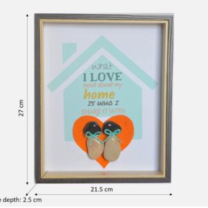 Double layered box frame with printed quote and decorated with pebbles. Perfect gift to celebrate special moments with your family.