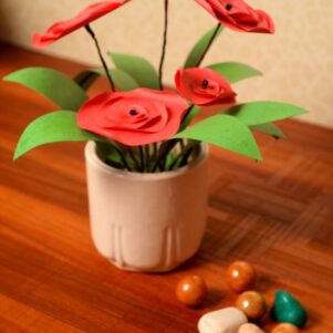 Nature craft made up of paper flower with ceramic pot, perfect home decor for your room and center table.