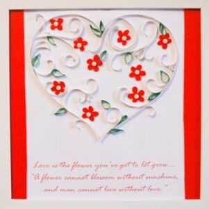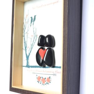 Double layered box frame with printed quote, decorated with polished pebbles.