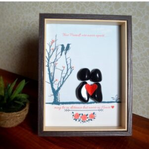 Double layered box frame with printed quote, decorated with polished pebbles. Gift this item to your friends and celebrate your friendship.