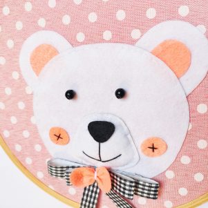 Beautifully handcrafted hoop wall art, which is aesthetically designed with soft polka dot fabric and felt. Made from top-quality material. The bear is made up of soft felt which is embossed from a background that gives an attractive look and 3d effect. This cute soft wall art is sure to become your child’s best companion and your kids will love this hoop art. It is extremely soft and cozy with heartwarming eyes that beg for a cuddly hug. Perfect gift for any occasion. You’ll be happy you chose this wall art for your loved one. This wall art is easy to hang in kids’ rooms as well as in your living place.