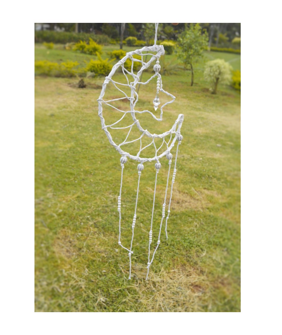 A beautiful hand-crafted wall hanging, which is made up of paper-wrapped wire twisted together to give a half moon shape, it is decorated with beads that add value to the product.