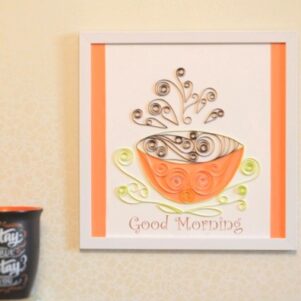 Quilling coffee cup kitchen decor frame. Perfect home decor and kitchen decor for the dining area, kitchen and other eating areas. Energize and refresh your mornings with this beautiful and cute quilling art.