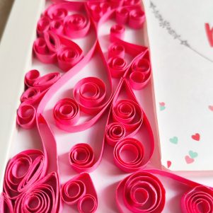 celebrate Anniversary Day with this perfect gift and thank her/him for all the love, care, and support. Dimension: 10.8 x 10.8 x 0.5 inch. Printed quote, decorated with quilling papers.
