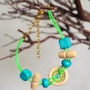 Multi-color wooden beads bracelet with anti-silver chain.Sleek design with a trendy look, great for casual wear.